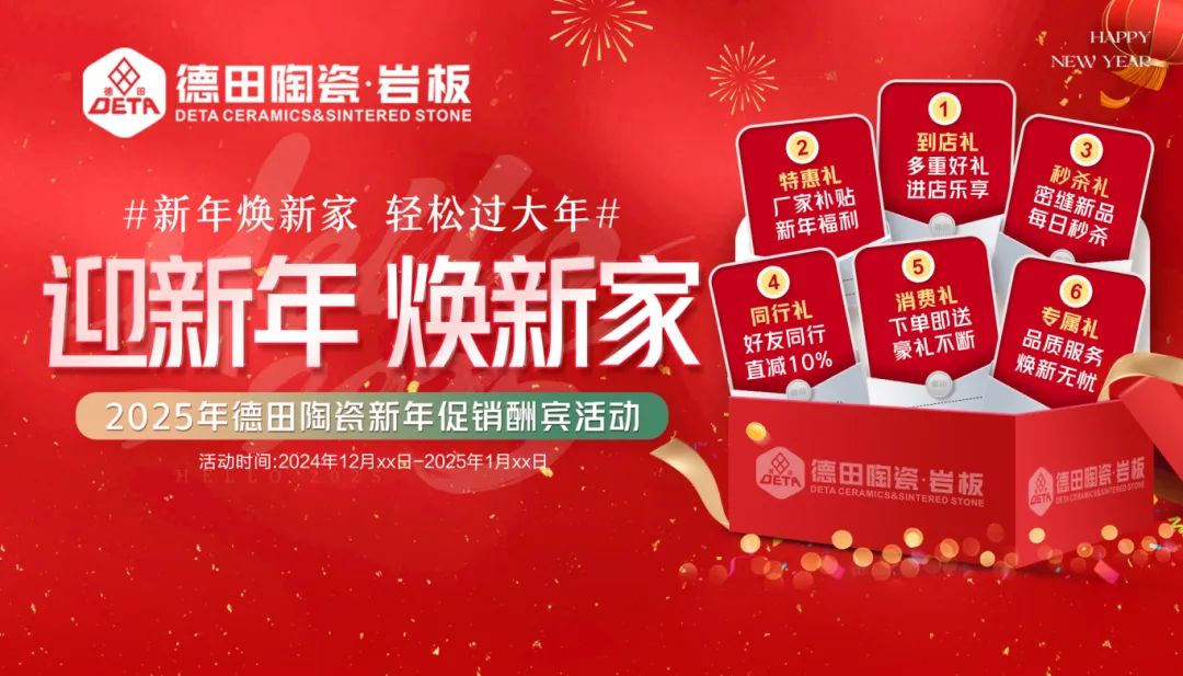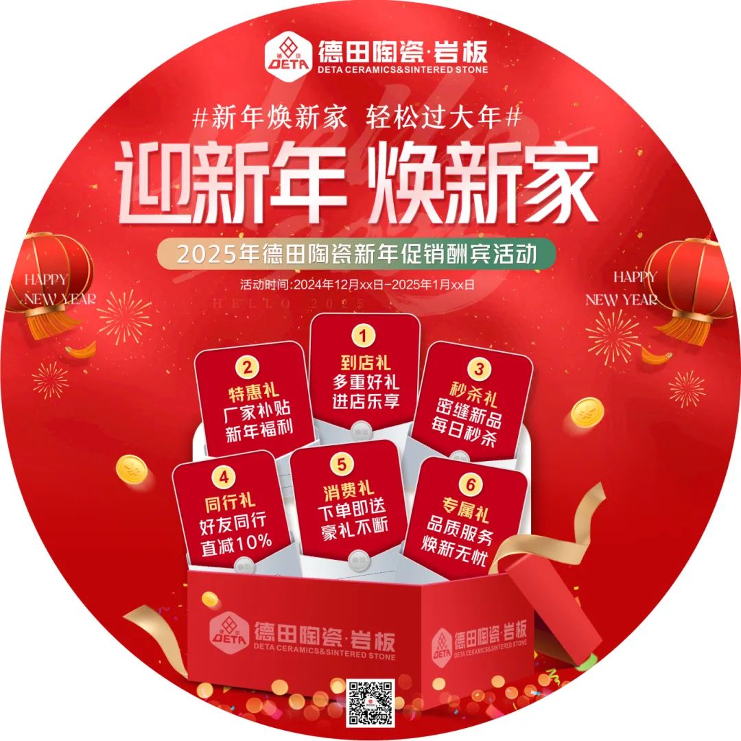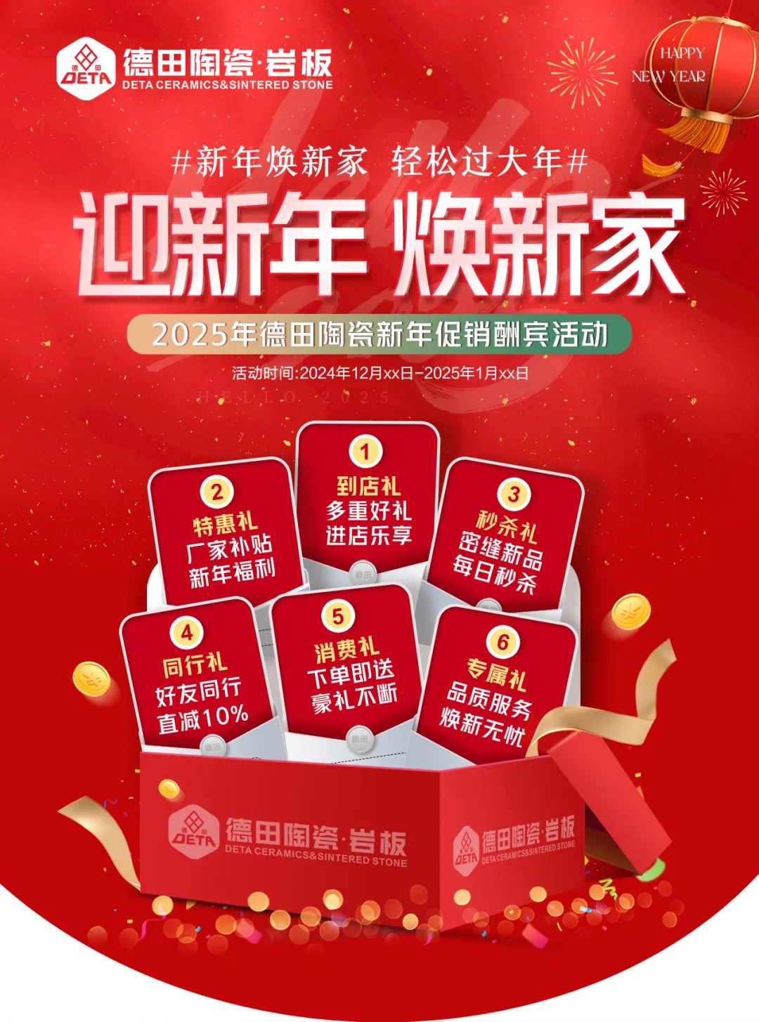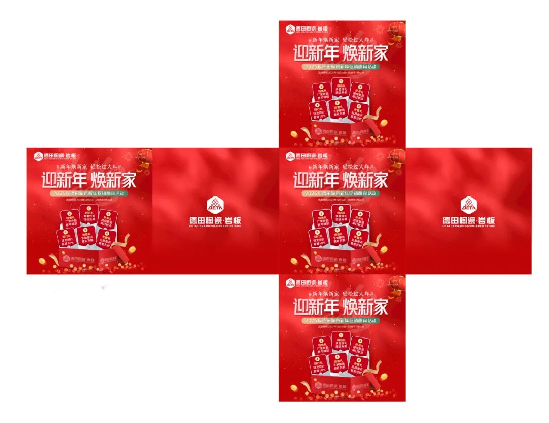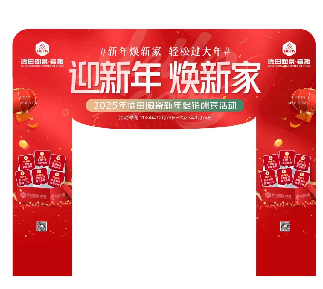 致經銷商們:Happy New Year為了迎接新年元旦銷售節點,更好地配合廣大經銷商開展促銷活動,營造濃郁的促銷氛圍,搶占市場,德田陶瓷發起“迎新年,煥新家”促銷活動,并推出系列促銷方案及物料,含拱門、單張、展架、貼紙等整套源文件。