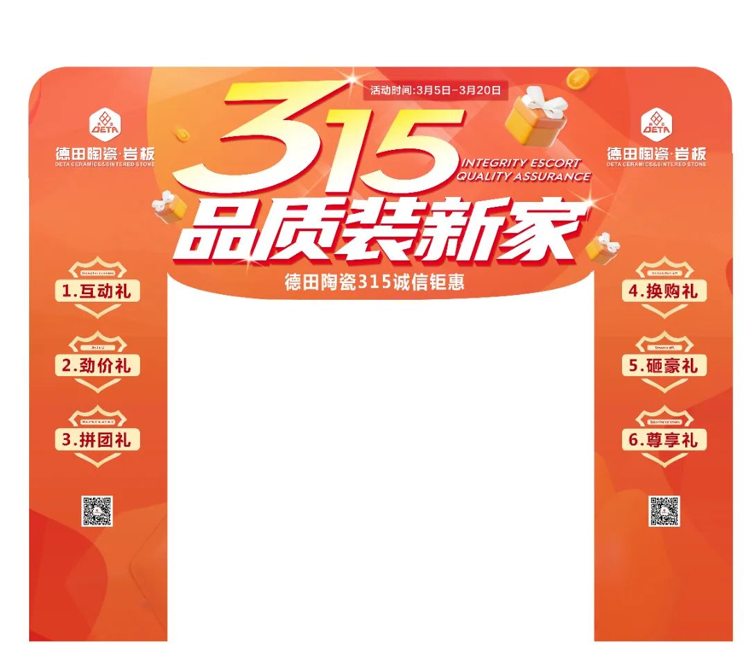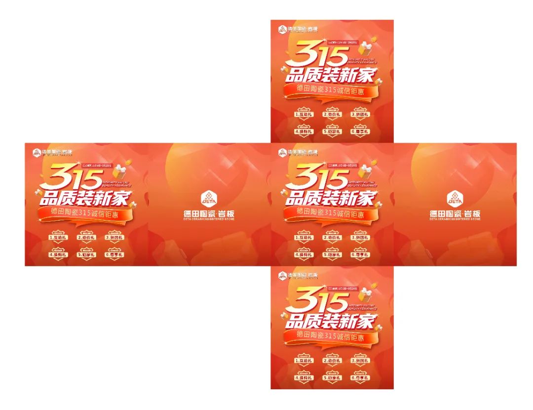 為了更好地配合各地經(jīng)銷(xiāo)商開(kāi)展3·15促銷(xiāo)活動(dòng),助力終端店面營(yíng)造濃郁的活動(dòng)促銷(xiāo)氛圍、抓住開(kāi)春時(shí)機(jī),搶占市場(chǎng),贏得門(mén)店銷(xiāo)售開(kāi)門(mén)紅,德田陶瓷推出系列促銷(xiāo)方案及設(shè)計(jì)了3·15氛圍相關(guān)物料(含拱門(mén)、單張、展架、貼紙等整套源文件)供各位經(jīng)銷(xiāo)商朋友使用。請(qǐng)各經(jīng)銷(xiāo)商家人們咨詢(xún)所屬區(qū)域經(jīng)理領(lǐng)取,并在當(dāng)?shù)剡M(jìn)行制作。(方案內(nèi)容僅供參考,經(jīng)銷(xiāo)商可根據(jù)自身實(shí)際需要作出調(diào)整)